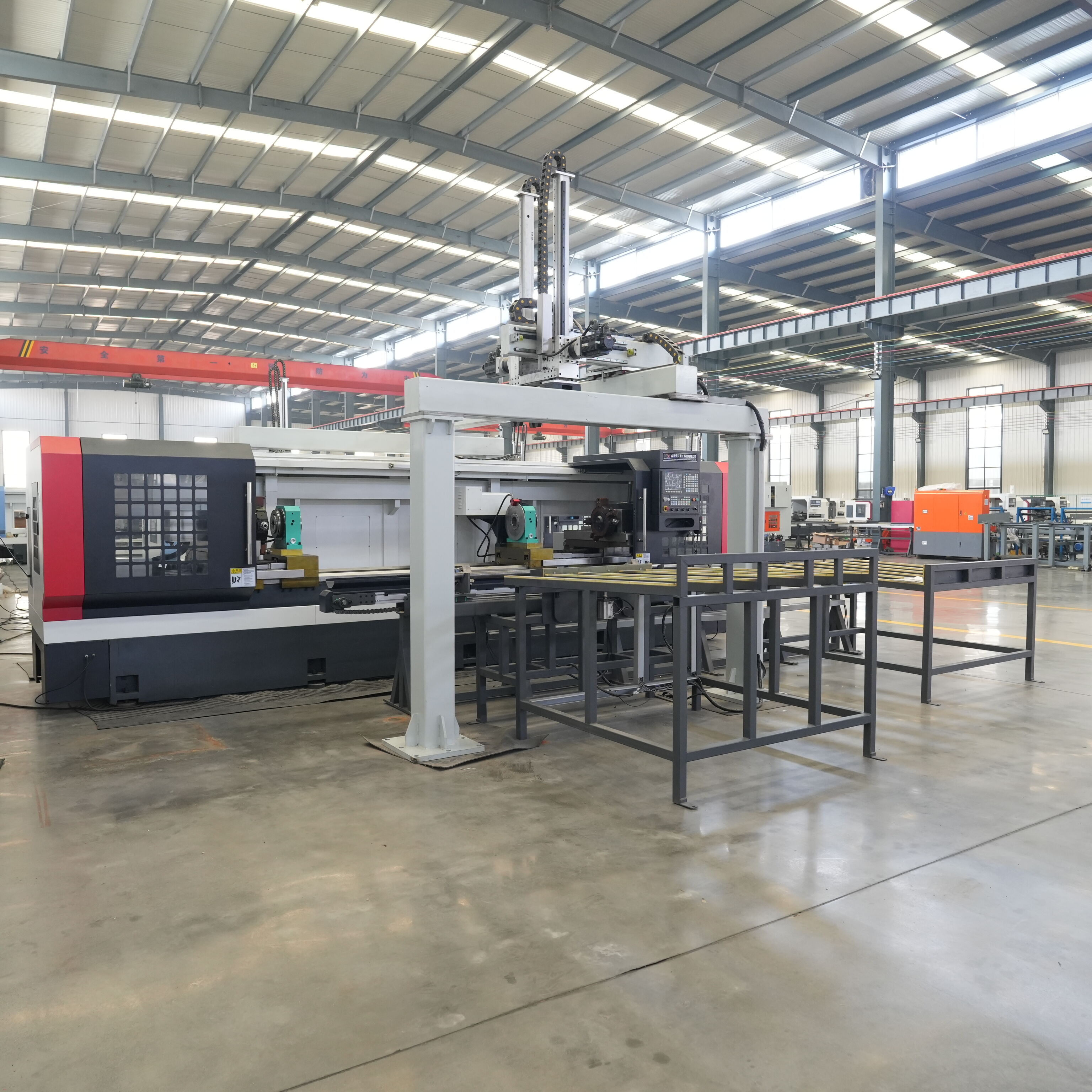 This is an horizontal CNC machining equipment with a flat bed and floor-mounted installation, equipped with a 7.5kw main motor. Its core system supports customizable configuration, and dual-system solutions such as GSK 980TC can be selected according to requirements. The equipment adopts an integrally cast bed structure, featuring a double-spindle and double-tool turret design (the tool turret can be customized on demand), and supports 4-axis linkage machining, enabling stable high-precision operations.